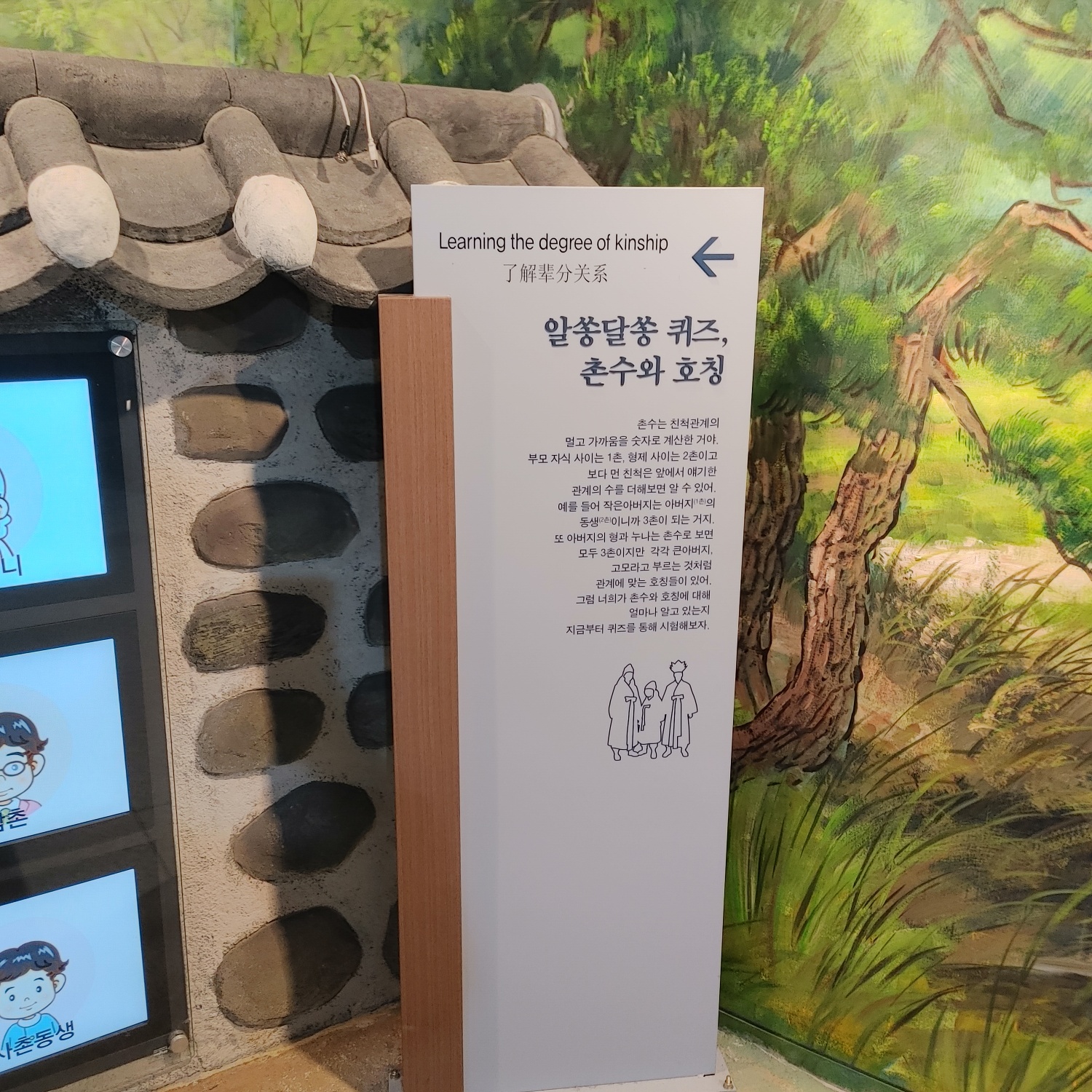 촌수와 호칭, 내가 만드는 족보, 다양한 게임을 이용한 교육, 트럼펠린/왕복 달리기 등 운동도 겸한 퀴즈 게임 등등 다양한 체험이 준비되어 있어요.